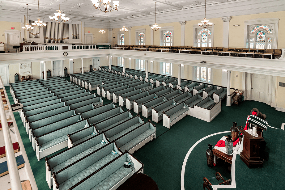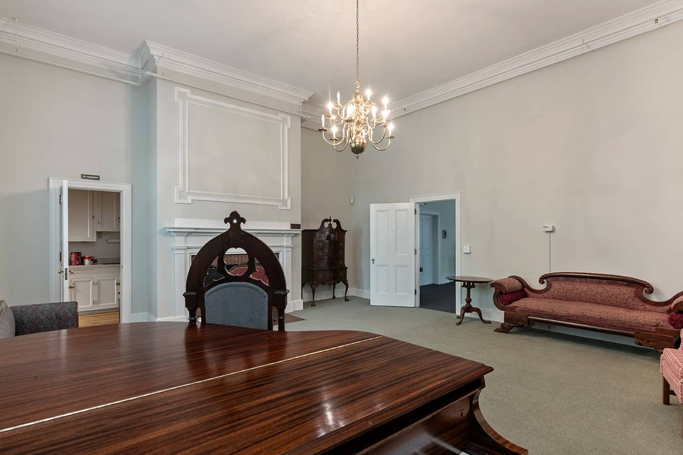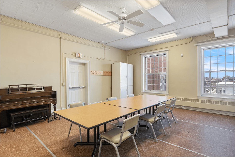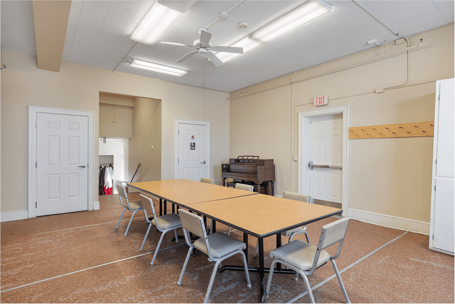 The church also supports the arts, offering excellent venues for concerts, recitals, and performances. The Sanctuary features superb natural acoustics and has hosted events like the Mozart Festival and First Night concerts. The Chapel, with its baby grand piano, provides an intimate setting for smaller recitals, while the Dining Room, with a stage and hardwood floor, is perfect for theatrical or dance rehearsals, small productions, or photography shoots.