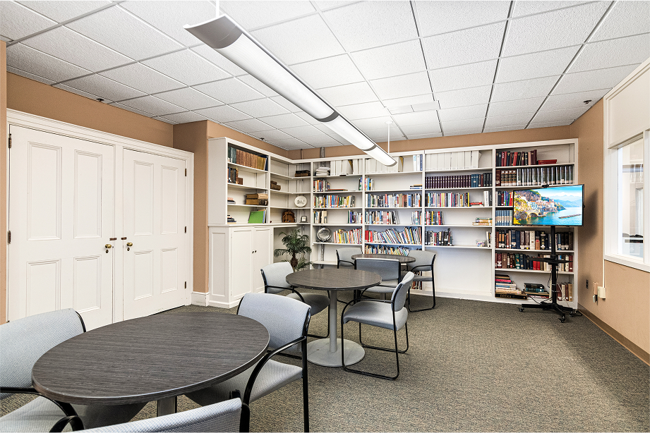 The large Sanctuary, smaller Chapel, and Dining Room can accommodate larger gatherings, with flexible setups available in the Chapel and Dining Room. Additional smaller spaces, such as the Stone Room, Conference Room, Library, and Classrooms, are ideal for seminars or small meetings.
